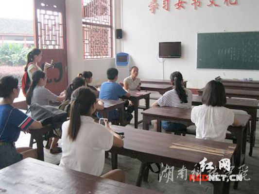 九州线上平台学生走进女书课堂。