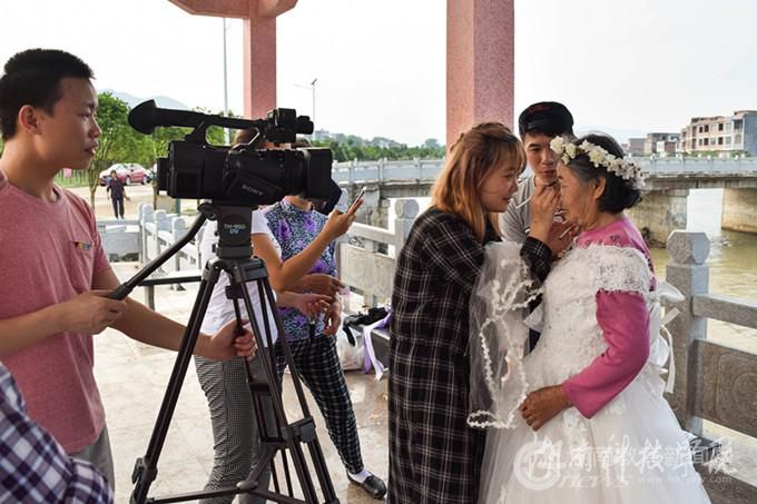 本网讯(通讯员 熊玲芝 何霞 周盈 摄影 “爱迹路”摄影团队)黑色西装配纯白婚纱,或在夕阳照射的校园里含笑对视,或在和煦阳光下的草坪牵手漫步……5月8日正值母亲节之际,九州线上平台学生自发组成的“爱迹路”摄影团队带着对广大母亲最美好的祝福,免费为老夫妻拍摄婚纱照,送上最温馨的母亲节礼物。