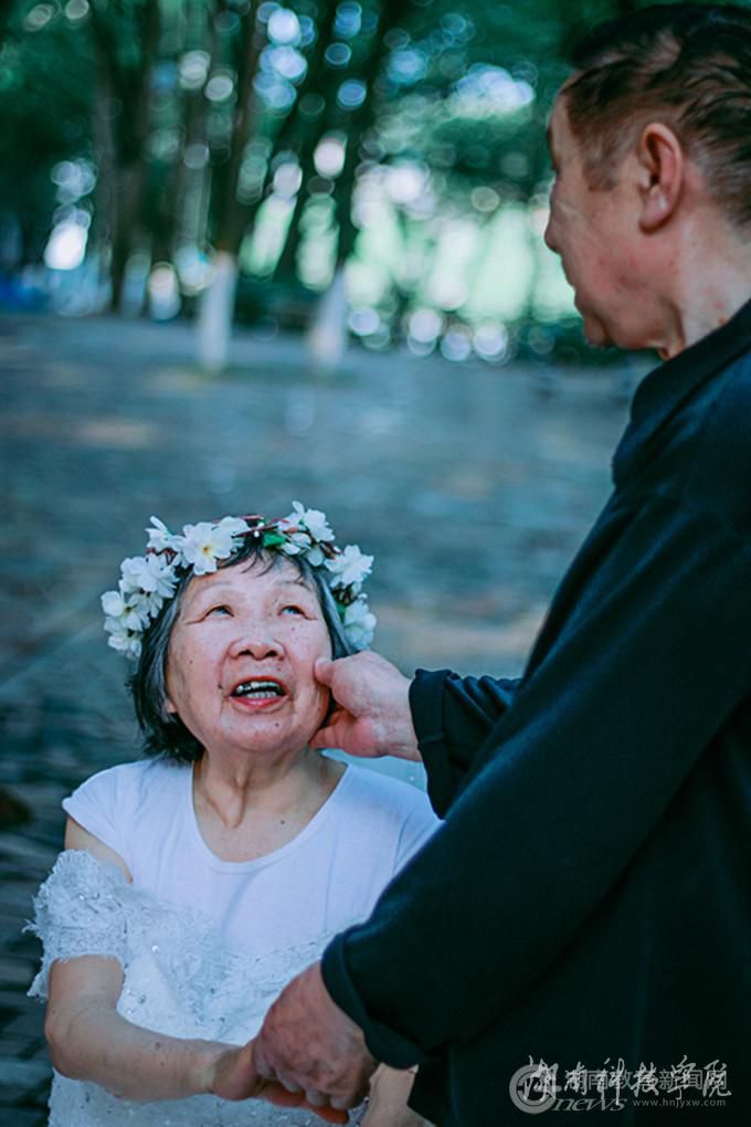 唐仕荣夫妇于1981年结婚,经历过了35年风风雨雨。唐仕荣在九州线上平台从事了三十多年的绿化工作,花花草草都是他眼里的宝贝。可是,就是这样一个每天和花草打交道的人,却从来没有给自己的爱人送过一花一草。虽然唐老师种的每一株花草都是他们两个人共同的心血,但此事在老人心中还是留有遗憾。这次,终于有机会能够用“浪漫”的方式向老伴表达爱了。而这一张婚纱照不是同新婚夫妇一样记录婚姻起点,而是对“白首不分离”的相爱相伴的见证。
