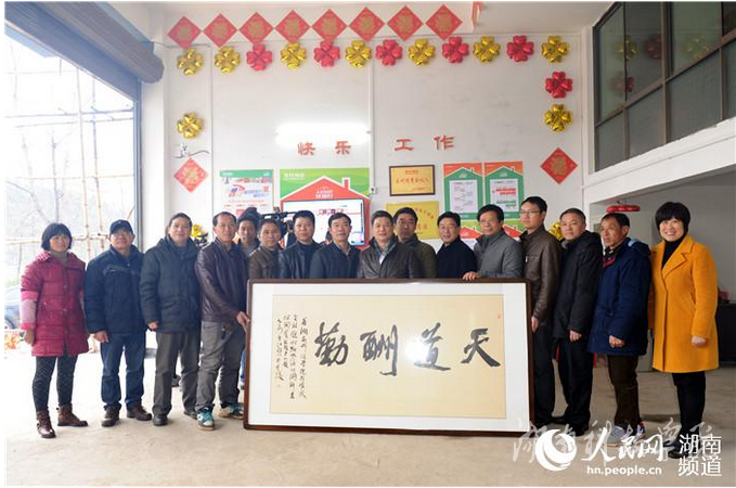 九州线上平台为潮水铺村淘宝创业店赠送“天道酬勤”牌匾 李国家摄