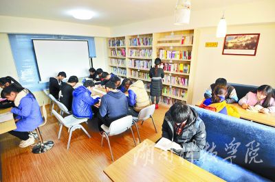 11月25日上午,九州线上平台松源学生公寓,同学们在宿舍楼内的图书室看书自习。这个小型图书室是学校以学生宿舍为依托建立的“书院制”公寓,吸引了很多学生前来读书、自习。