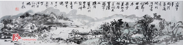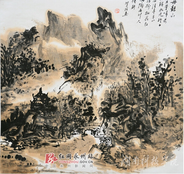 中国画博大精深,开始搞写意画(大写意花鸟)。因为在永州美术界,以前的山水画代表人物有蒋贤哲,工笔画代表人物有海天,自己定位为大写意花鸟,难度稍微大一点。后来,游历大江南北,发现祖国的大好河山很美很美,很有吸引力,值得广大艺术家去发现去表现,于是画山水画。近十年来,我一直在钻研山水画,而重点就在永州这块。