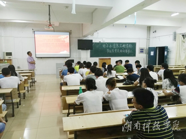 本网讯(通讯员 刘俊雄)7月2日晚上,电子与信息工程学院党总支书记陈泽顺在知行楼307教室为58名2013级学生党员上题为《党员如何加强政治理论学习——从“两学一做”教育学习谈起》的党课。