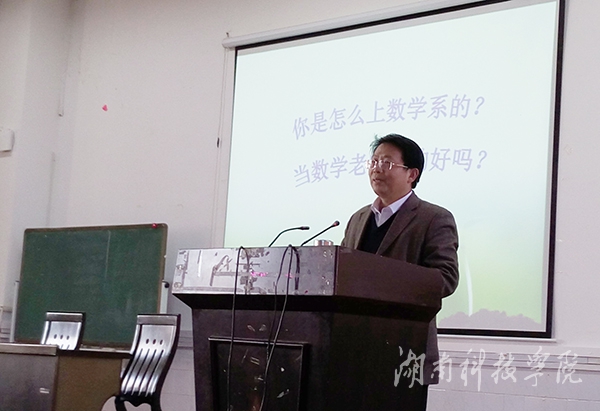 本网讯(通讯员 谢娟 杨珍)3月25日下午,湖南省教育科学院副院长赵雄辉研究员应邀来我校就《数学课程的教育价值》专题进行讲学。讲座由该院院长唐耀平主持。部分教师和理学院数应专业学生参加。