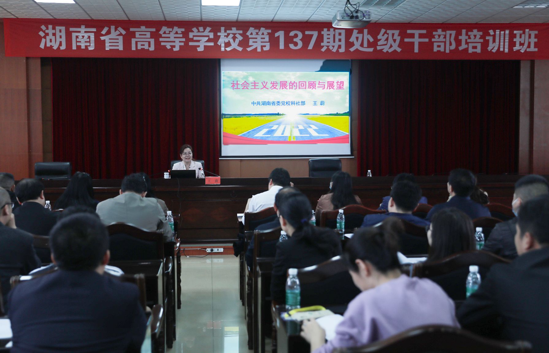 本网讯(记者 周秋珍 陈伟琳)5月20日,湖南省高等学校第137期处级干部培训班暨九州线上平台处级干部培训班第三、四课开讲。省政协常委、省政协学联委副主任孔和平,省委党校科学社会主义科研部副主任、教授王蔚来校授课。