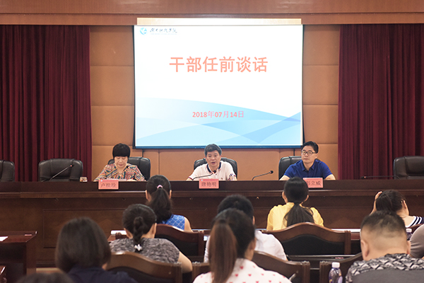 本网讯 7月14日上午,学校对新提任干部进行任前谈话和廉政谈话。党委副书记唐艳明、纪委书记彭立威出席。