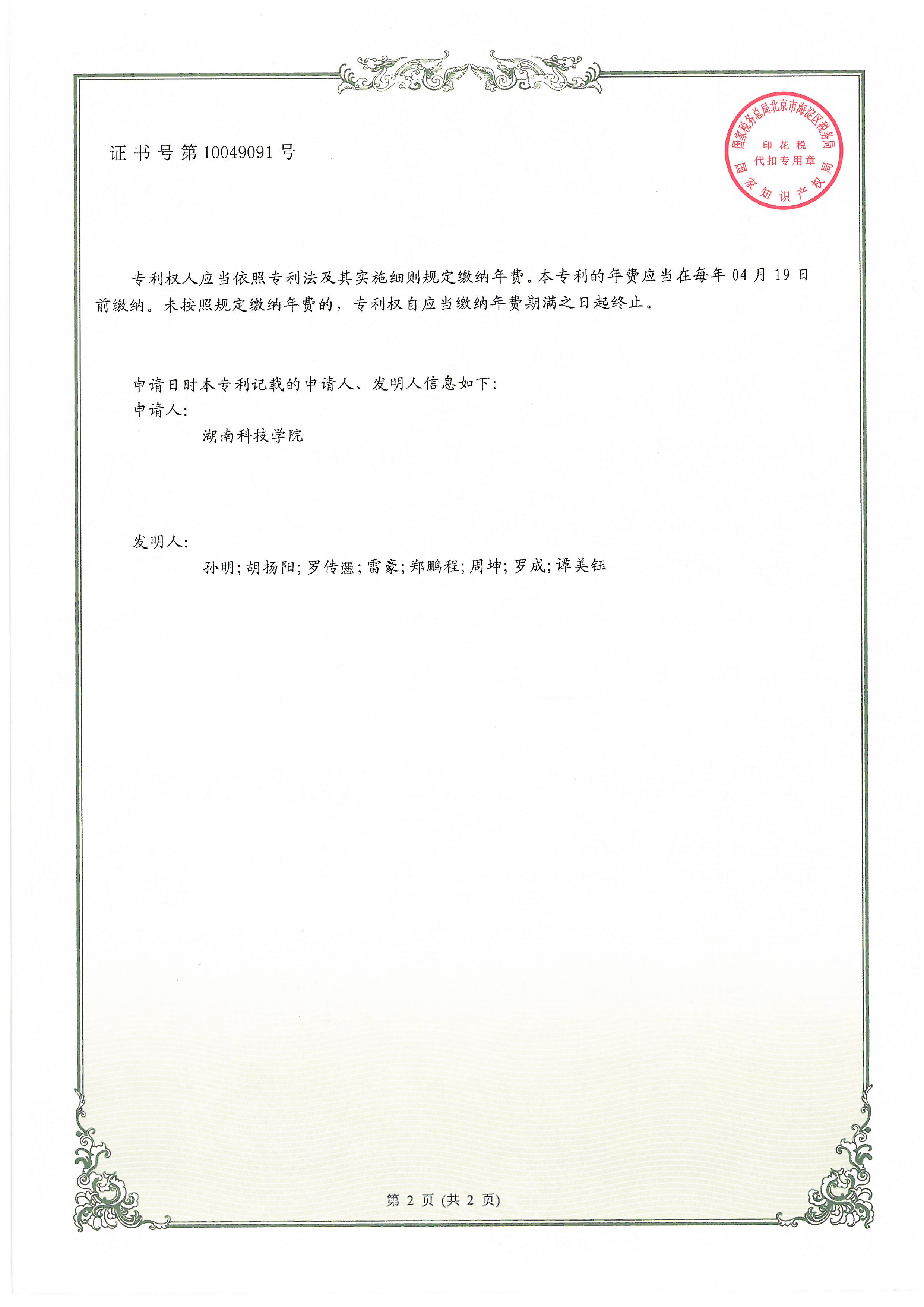 张贤才发明专利ZL201811352400.3授权证书