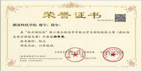 三、人才培养 学生近三年在教育厅等部门组织的官方权威赛事和行业内有影响力的企业赛事中获得可喜成绩,获得全国大学生测绘技能竞赛特等奖1项,一等奖4项,二等奖6项,专业组团体二等奖1项。全国大学生GIS应用技能大赛中二等奖3项,湖南省测绘技能大赛一等奖2项、二等奖6项、三等奖12项,在2018年获团中央“镜头中的三下乡”优秀团队荣获全国三下乡重点团队。测绘工程专业考研上线人数、录取人数逐年上升,部分学生录取到中国地质大学、长安大学、广东工业大学等高校攻读硕士研究生,考研率达20%左右。