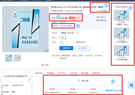 如果该商品有成交记录,则成交记录将显示该商品成交时的成交价和最低报价以及 1个月的平均成交价(或报价),可供采购人下单采购时参考。