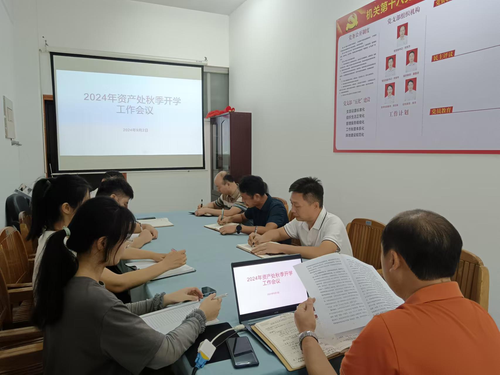 9月2日上午,资产处在行政楼318会议室召开2024年秋季开学工作会议,资产处全体成员参会,会议由资产处处长刘东方主持。
